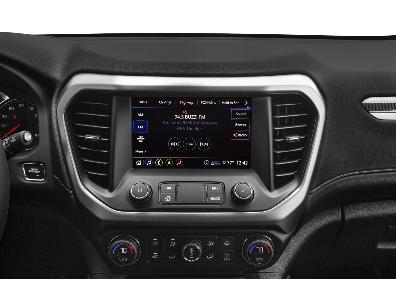 - 8" diagonal GMC Infotainment System with Navigation, includes multi-touch display, AM/FM/SiriusXM1 radio